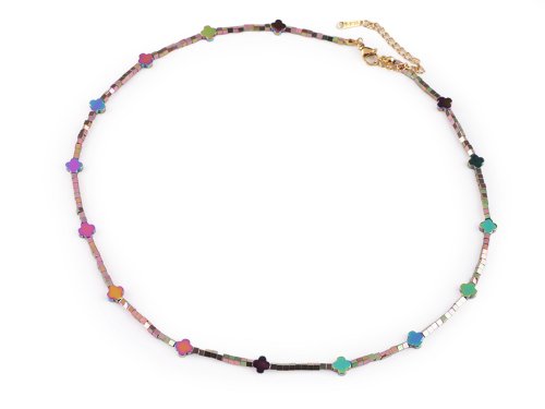Pútavý náhrdelník vyrobený z korálikov pokovovaného hematitu a kvalitnej nerezovej ocele je veľmi elegantný, patrí medzi šperky, ktoré vďaka svojej fascinujúcej povrchovej úprave zaujmú na prvý pohľad. Náhrdelník poteší každú ženu, je darčekom, s ktorým nešliapnete vedľa. Hodí sa k slávnostným príležitostiam, skvele podčiarkne aj business štýl obliekania. Zapína sa na karabínku a predlžovaciu retiazku.