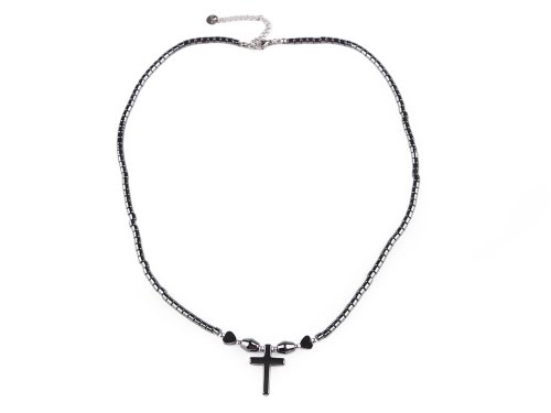 Náhrdelník hematitový srdce, krížik - šedá hematit krížik