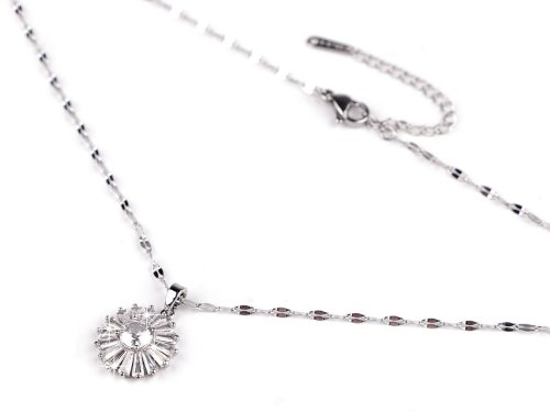 Retiazkový náhrdelník s okrúhlym príveskom niekomu pripomína púpavu, niekomu zase slniečko. Je vyrobený z kvalitnej nerezovej ocele. Prívesok sa nádherne trblieta, je vysadený brúsenými kameňmi. Je zavesený na šlupne, voľne sa na retiazke pohybuje. Náhrdelník perfektne dozdobí väčšinu outfitov. Zapína sa na karabínku s predlžovacou retiazkou.