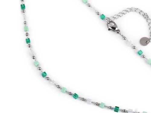 Jemný ketlovaný náhrdelník je vyrobený z kvalitnej nerezovej ocele. Je ozdobený brúsenými korálkami v tvare kociek. Brúsené korálky sa jemne lesknú, náhrdelník sa hodí k slávnostným šatám aj na bežné nosenie, má veľmi všestranné využitie. Zapína sa na karabínku a predlžovaciu retiazku.