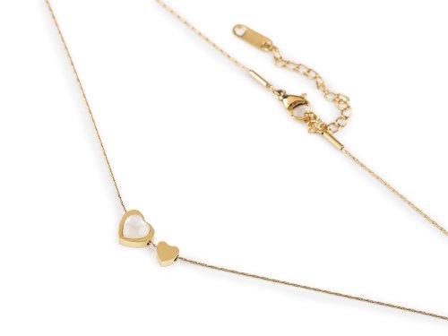 Náhrdelník s ozdobou srdiečka je vyrobený z kvalitnej nerezovej ocele. Je veľmi decentný, motív srdiečka poteší všetky ženy. Je aj nádherným darčekom pre blízku osobu alebo na Valentína. Náhrdelník č. 1 má hranatá hadia retiazka široký 1 mm, srdiečko je ozdobené pútavou imitáciou perlete. Je veľké 10 x 11 mm, na náhrdelníku sa voľne pohybuje, ale nejde zložiť. Náhrdelník č. 2 a 3 má jemnú retiazku z hranatých očiek široký 0,6 mm, väčšie srdiečko (8x8 mm) je ozdobené efektom mačacieho oka, malé srdiečko (5x5 mm) má vysoký zrkadlový lesk. Obe srdiečka sa na retiazke voľne pohybujú, z náhrdelníka nejdú zložiť. Náhrdelníky sa zapínajú na karabínku s predlžovacou retiazkou.