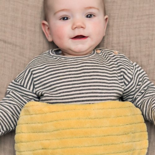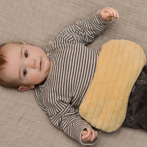 • špeciálne navrhnutý tvar zaisťuje, že sa vankúšik rozprestiera po stranách bruška bábätka a tak ho príliš nezaťažuje a netlačí naň