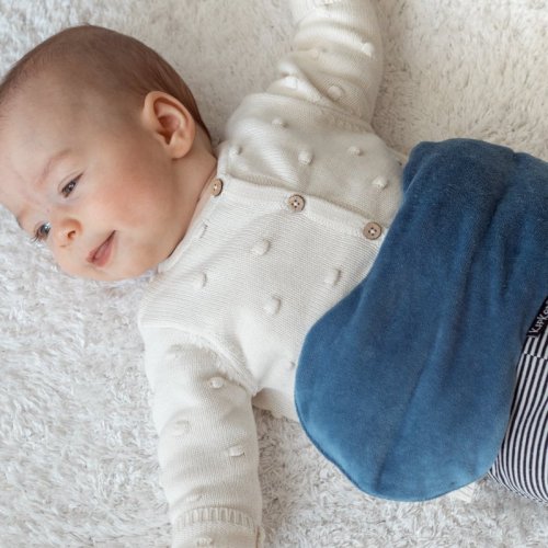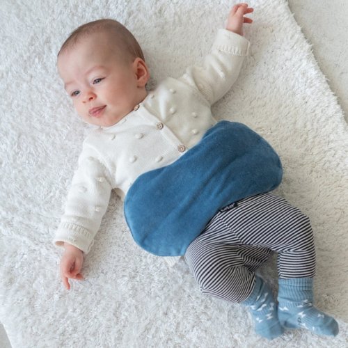 • špeciálne navrhnutý tvar zaisťuje, že sa vankúšik rozprestiera po stranách bruška bábätka a tak ho príliš nezaťažuje a netlačí naň