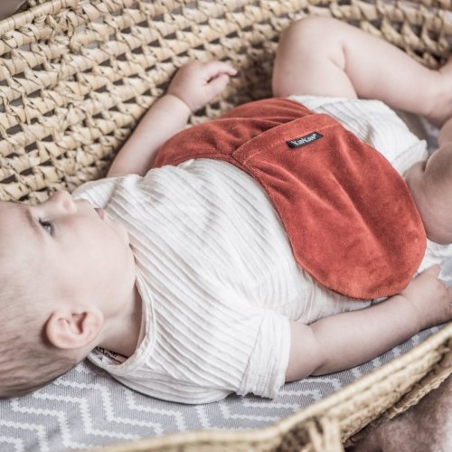 • špeciálne navrhnutý tvar zaisťuje, že sa vankúšik rozprestiera po stranách bruška bábätka a tak ho príliš nezaťažuje a netlačí naň