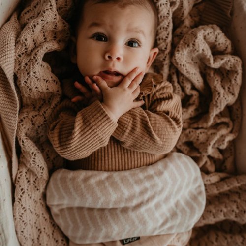 • špeciálne navrhnutý tvar zaisťuje, že sa vankúšik rozprestiera po stranách bruška bábätka a tak ho príliš nezaťažuje a netlačí naň