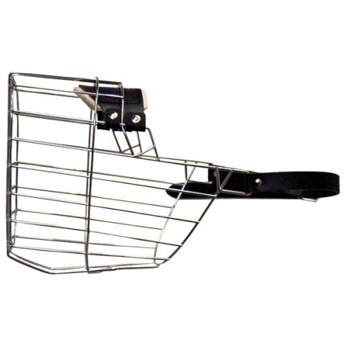 Kovový náhubok s koženými remienkami na zapínanie. Vhodný najmä pre nemeckých ovčiakov a podobné plemená.