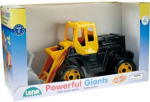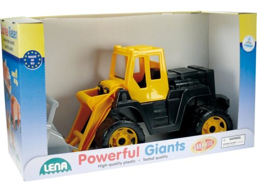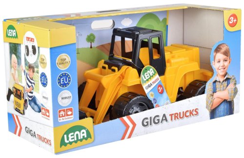 Žltočierny bager s nakladacou lyžicou, ktorý je pripravený pracovať na pieskovisku. Rozmer 62 cm. Vhodné od 3 rokov.