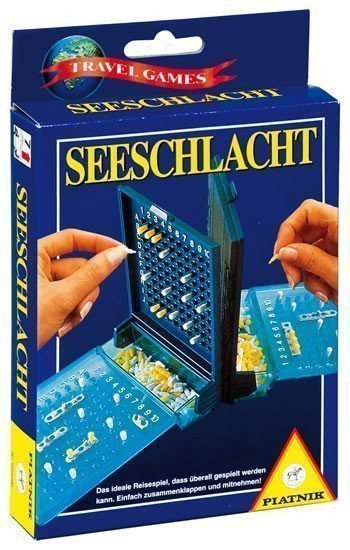 Cestovná verzia hry Námorná bitka. Každý hráč si otvorí sklopenú dosku s tým, že čierna časť stojí kolmo, aby bránila pohľadu súpera na Vašu hraciu plochu a naopak. Hráč si na spodnú priehľadnú časť ľubovoľne rozmiestni 5 lodí. Môžu byť umiestnené vodorovne aj kolmo. Obaja hráči majú rovnaký počet lodí s rovnakými veľkosťami. Začína sa bitka. Začínajúci hráč uvedie pri streľbe písmeno od A do J a číslicu od 1 do 10. Vyšle svoju strelu na príslušné súradnice svojho protihráča. Protivník musí oznámiť buď vedľa (strela dopadla mimo lode) alebo zásah (strela zasiahla niektoré plavidlo). Pokiaľ sa jeden z hráčov postupne trafí do všetkých častí jednej z nepriateľských lodí, jej kapitán je povinný ohlásiť, že je loď potopená. Vztýčená čierna doska predstavuje protivníkovo more, v prípade zásahu si vloží strieľajúci hráč do kolmo stojacej dosky žltý kolíček, aby mal prehľad o stave súperovej flotily. Biele štipce slúžia ako pomocné signály označujúce miesta, kde sme súpera nezasiahli. V streľbe sa obaja hráči striedajú. Koniec hry: Ak sú zasiahnuté všetky lode jedného z hráčov, ich kapitán prehráva. Vhodné od 7 rokov.