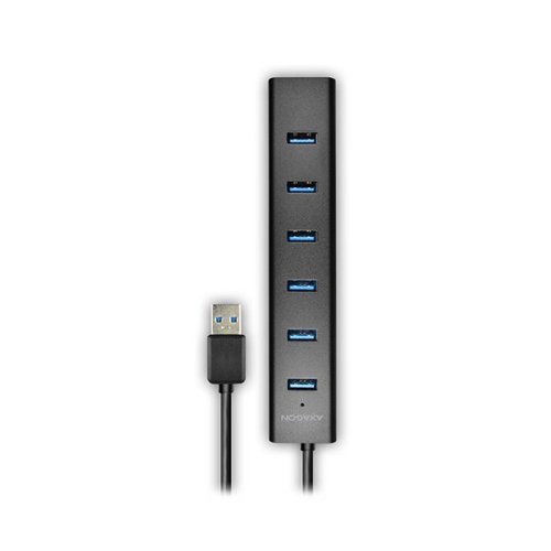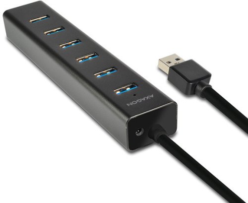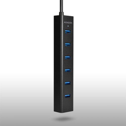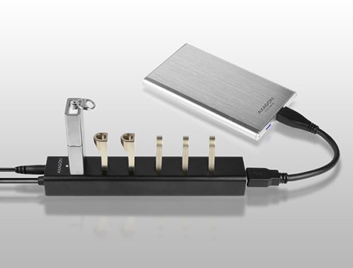 - Rozbočovač / húb Axagon HUE-SA7BP ponúka 7 downstream USB 3.0 portov s dostatočným priestorom okolo konektorov