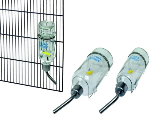 Napájačka zo skla, ktorá sa ku klietke uchytí z vonkajšej strany a dovnútra klietky sa len prestrčí kovová trubička. Napájačka má vo vnútri plavák označujúci výšku hladiny vody. Vhodná pre drobné cicavce a zakr. králiky . V napájačke by mala byť denne vymenená voda. S ohľadom na možnosť tvorby rias, odporúčame vždy pred výmenou vody napájačku riadne vypláchnuť.