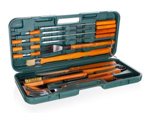 Náradie grilovacia nerez, drevená rukoväť, sada 18díl., kufor PH.