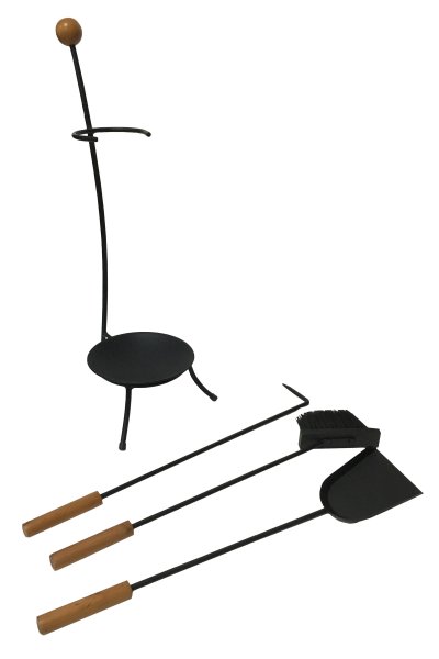 výška: 67 cm farba: čierna materiál: drevo/oceľ sada obsahuje lopatku, pohrabáč a metličku