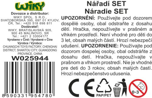 Náradie set. Veľkosť kombináčok 16 cm. 2 varianty - červená, modrá.