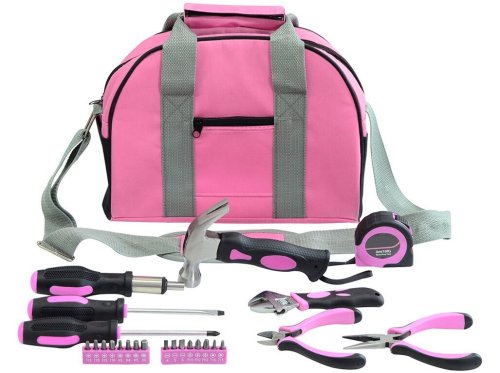 Tašku je možné prenášať v ruke alebo pohodlne cez rameno. Ramenný popruh je vybavený výstuhou pre rovnomerné rozloženie váhy bremena a aby sa popruh nezarezával do ramena. Súprava náradia v ružovom prevedení, ideálna pre ženy, ktorá nájde uplatnenie v domácnosti, garáži alebo na chate.