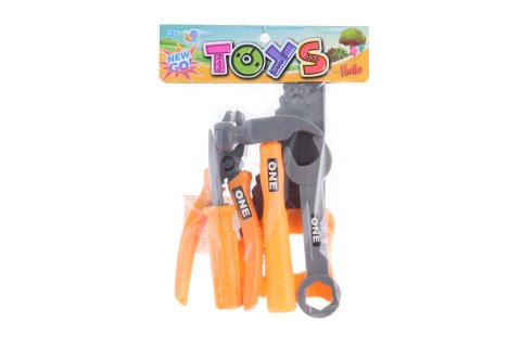 Plastové náradie v sáčku. Balenie obsahuje kladivo, kľúč, skrutkovač, kliešte a pílku. Rozmery balenia cca 16 x 22 x 4 cm. Vek 3+
