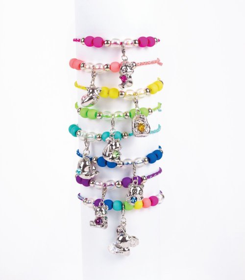 Balenie obsahuje 3 náramky s príveskami a kryštálom SWAROVSKI, krabičku v tvare srdca, kľúčik, korálky, farebné šnúry a inštrukcie Vhodné od 8 rokov.