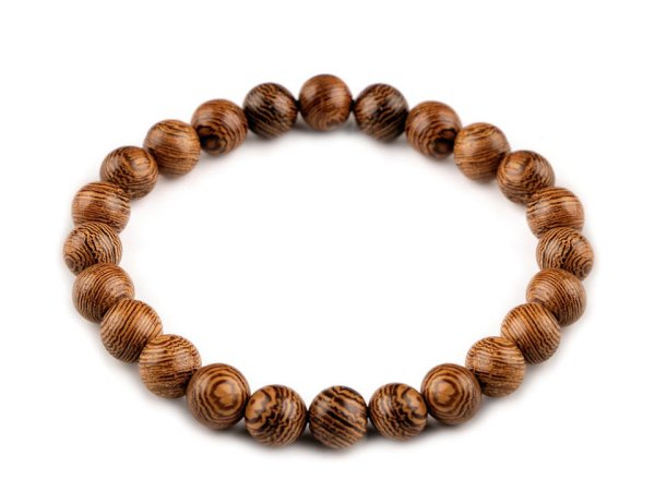 Náramok z drevených korálikov ocenia všetci milovníci prírodných materiálov. Vďaka svojmu nevšednému vzhľadu sa stane elegantným doplnkom, ktorý je možné využiť aj pri spoločenských udalostiach. Náramok má vďaka ľahko sa naťahujúcej pruženke univerzálnu veľkosť.
