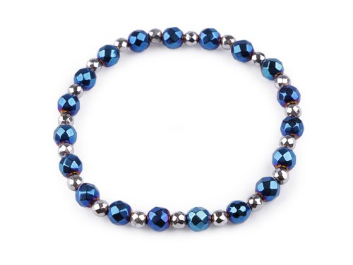 Pútavý náramok je vyrobený z brúsených korálikov pokovovaného hematitu. Vďaka pruženke sa náramok ľahko natiahne na ruku, má univerzálnu veľkosť. Hematitový náramok patrí medzi šperky, ktoré vďaka svojej fascinujúcej povrchovej úprave zaujmú na prvý pohľad. Brúsené plôšky vytvárajú efektné svetelné odlesky. Náramok poteší každú ženu, je darčekom, s ktorým nešliapnete vedľa. Hodí sa k slávnostným príležitostiam, skvele podčiarkne aj business štýl obliekania.