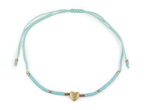 Shamballa náramky so zlatým srdiečkom a rokajlom sú úžasným doplnkom letného outfitu.