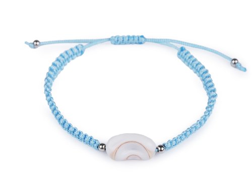 Shamballa náramky s mušľou sú úžasným doplnkom letného outfitu. Hodí sa ako k šatám, tak k blúzkam, tričkám aj plavkám. Predávajú sa ako [sada mixu 12 ks] na papierovej karte na zavesenie, [mixy môžu mať rôzne farby.] Na macramé šnúrky je doprostred pripevnená mušle a strieborné plastové korálky. Zapínanie je posuvné, oba konce náramku prechádzajú stredovým uzlom, ktorý umožňuje utiahnutie šnúrok. Náramok má univerzálnu veľkosť.