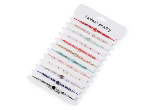 Shamballa náramky so srdiečkom a brúsenými korálkami s AB efektom sú úžasným doplnkom letného outfitu. Oslní svojim trblietkom, hodí sa ako k šatám, tak k blúzkam, tričkám aj plavkám. Sú ideálne na každodenné nosenie, či už idete do práce, na schôdzku alebo do mesta. Môžu tiež slúžiť ako darček pre vašich blízkych, pretože sa hodí ku všetkým príležitostiam a štýlom. Zapínanie majú posuvné, oba konce náramku prechádzajú stredovým uzlom, ktorý umožňuje utiahnutie šnúrok. Náramky majú univerzálnu veľkosť. Môžete ich nosiť samostatne pre decentný vzhľad, alebo ich kombinovať s ďalšími náramkami pre výraznejší efekt. Náramky v mixe sa predávajú ako sada 12 ks na papierovej karte na zavesenie.