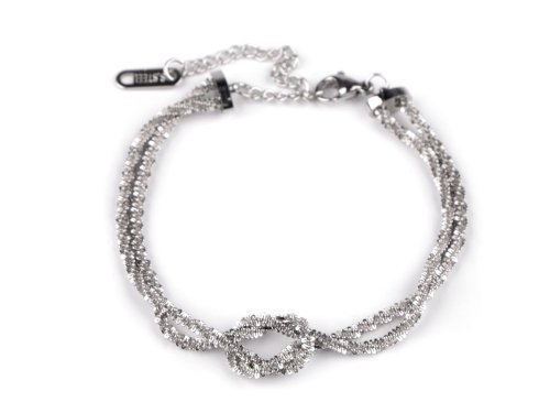 Dvojradový náramok s uzlom je vyrobený z kvalitnej nerezovej ocele. Je mimoriadne zaujímavý svojou krútenou štruktúrou, vďaka svojej odolnosti a príťažlivému dizajnu je tento náramok skvelou investíciou do vašej každodennej elegancie. Detailné spracovanie a jednoduchý dizajn z neho robí dokonalý módny doplnok pre akúkoľvek príležitosť. Zapína sa na karabínku a predlžovaciu retiazku.