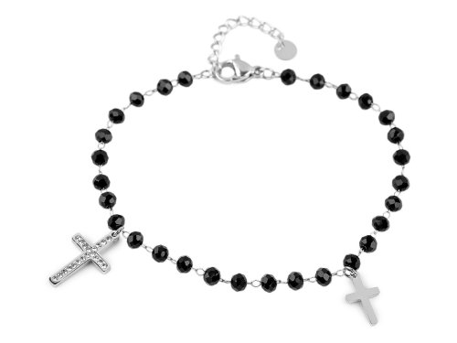 Náramok z nerezovej ocele s krížikmi je doplnkom, ktorý pritiahne pozornosť. Jemne brúsené korálky v kombinácii so žiarivým kovovým leskom vytvárajú sofistikovaný vzhľad. Náramok je doplnený nastaviteľnou retiazkou pre pohodlné nosenie, čo vám umožní prispôsobiť dĺžku podľa potreby. Rozmery krížikov sú 7 x 12 mm, 10 x 17 mm.