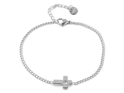 Náramok z nerezovej ocele má pútavý detail v podobe krížika s brúseným kamienkom. Jednoduchý dizajn z neho robí dokonalý módny doplnok na každodenné nosenie. Vďaka zapínaniu na karabínku a adjustačnej retiazke je náramok ľahko nastaviteľný a dokonale sa prispôsobí vášmu zápästiu. Rozmery krížika sú 9 x 12 mm.