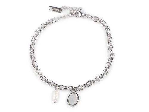 Retiazkový náramok ozdobený perleťovým príveskom a riečnou perlou. Prívesky sú k náramku pevne prichytené, po náramku sa nepohybujú. Náramok je vyrobený z kvalitnej nerezovej ocele vo vysokom lesku. Romanticky dozdobí vaše zápästie, hodí sa na nosenie na každý deň aj na slávnostné príležitosti. Zapína sa na karabínku a predlžovaciu retiazku.