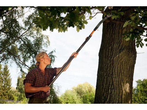 Teleskopická stredná násada QuikFit™ s dĺžkou od 140 do 240 cm je ľahko ovládateľná a používa sa pre menej prístupné miesta na záhrade. Jej ľahká hliníková konštrukcia je doplnená západkou, ktorá bezpečne zafixuje nastavenú dĺžku. Má unikátny automatický dvojitý zamykací systém QuikFit™ - držiteľ ocenenia Red Dot Award.