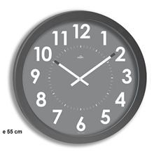 Veľké analógové nástenné hodiny vhodné do väčších priestorov Veľmi dobre čitateľné vďaka veľkým bielym číslovkám na šedom podklade Veľmi tichý chod Priemer hodín 55 cm Ochranné bezpečnosťou minerálne sklo a plastové …