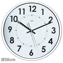 Klasické analógové nástenné hodiny Veľmi dobre čitateľné vďaka veľkým čiernym číslicam (2,8 cm) na bielom podklade Tichý chod Priemer hodín 30 cm Ochranné bezpečnosťou minerálne sklo a plastové puzdro Súčasťou …