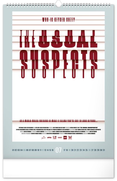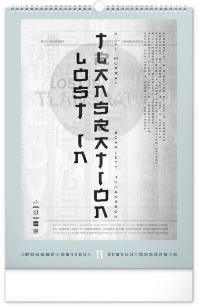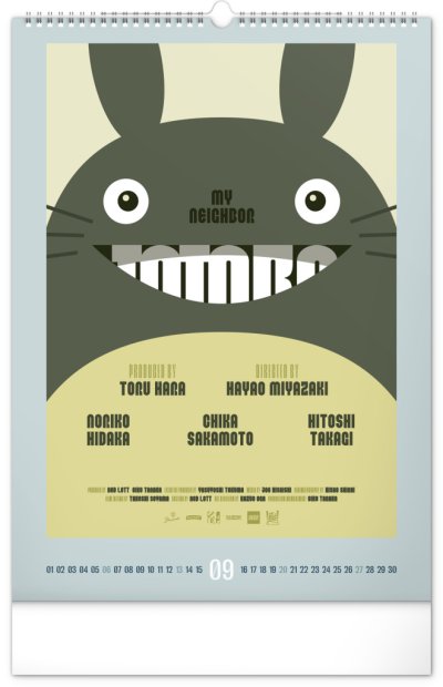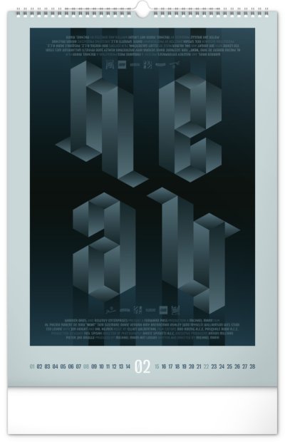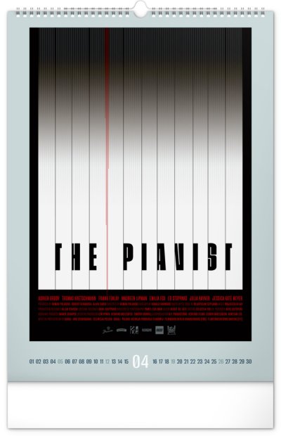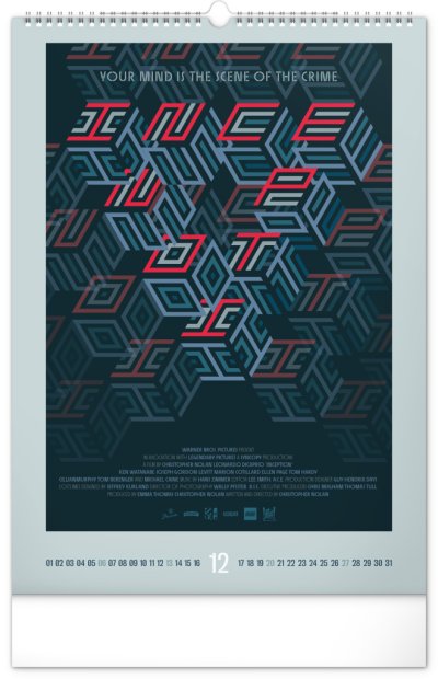 Nástenný kalendár s alternatívnymi filmovými plagátmi od grafického dizajnéra Olega Slepcoffa predstavuje originálny pohľad na slávne snímky ako Lúpež po taliansku, Pianista, Interstellar, Obvyklí podozriví alebo Môj sused Totoro. Každý mesiac ponúka jedinečné grafické stvárnenie, ktoré osloví milovníkov filmu aj designu. Kalendár je štýlovým doplnkom každého interiéru.
