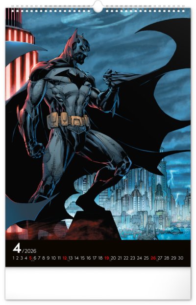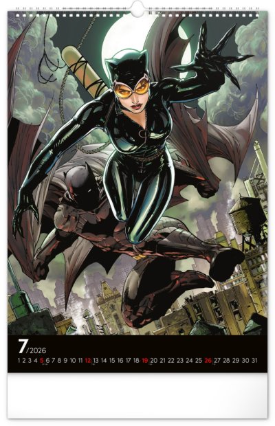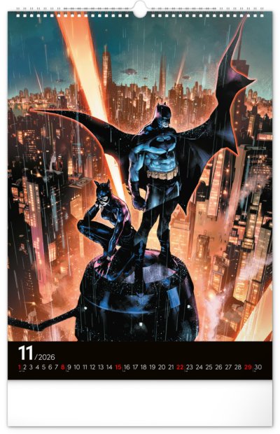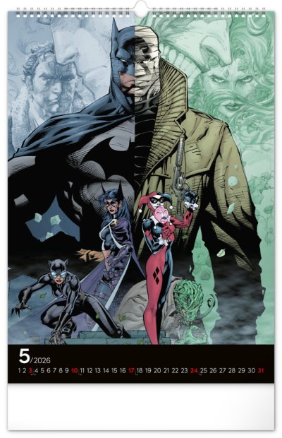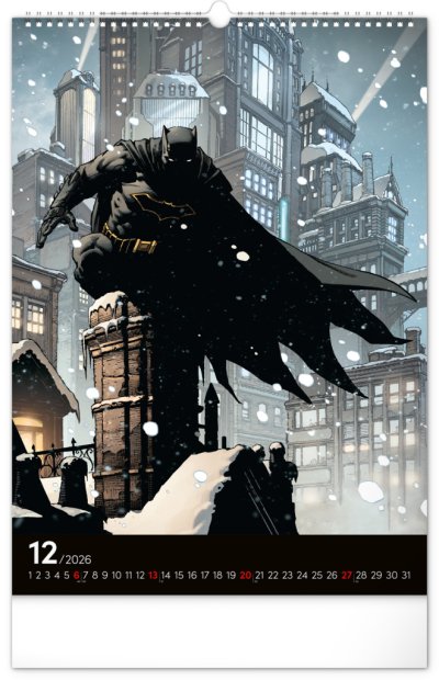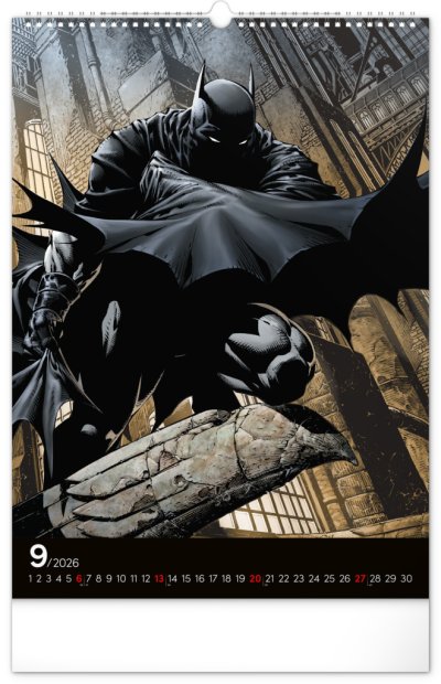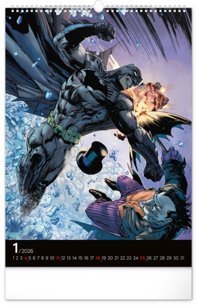 Nástenný kalendár s obrázkami z komiksov Batman poteší každého fanúšika Temného rytiera. Ponúka ikonické ilustrácie hrdinu z Gothamu na každý mesiac roka. Kalendár je ideálny ako dekorácia do izby alebo kancelárie.