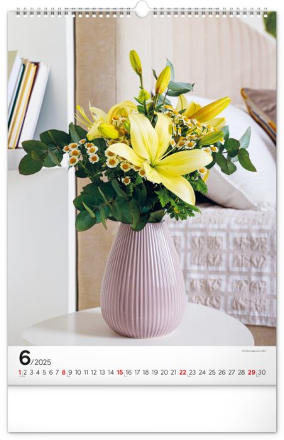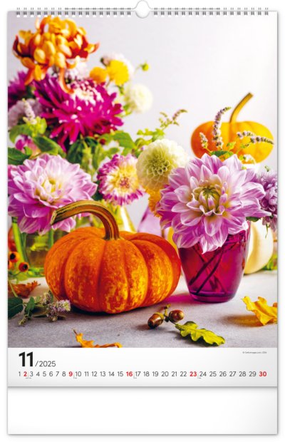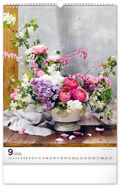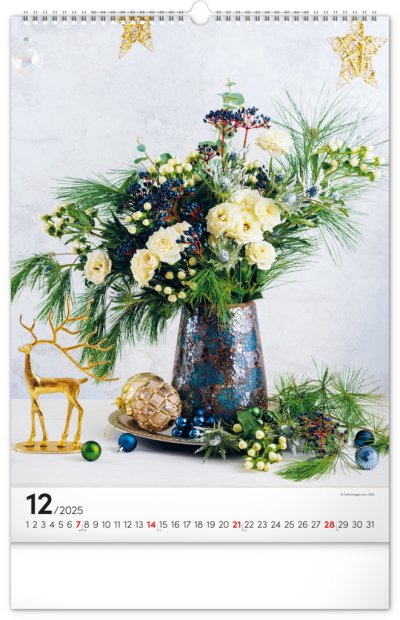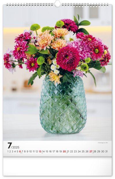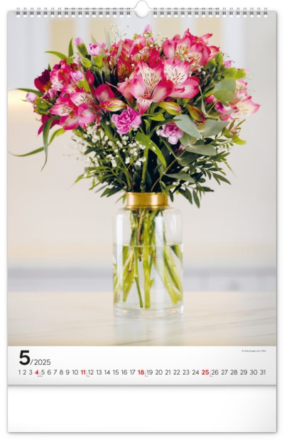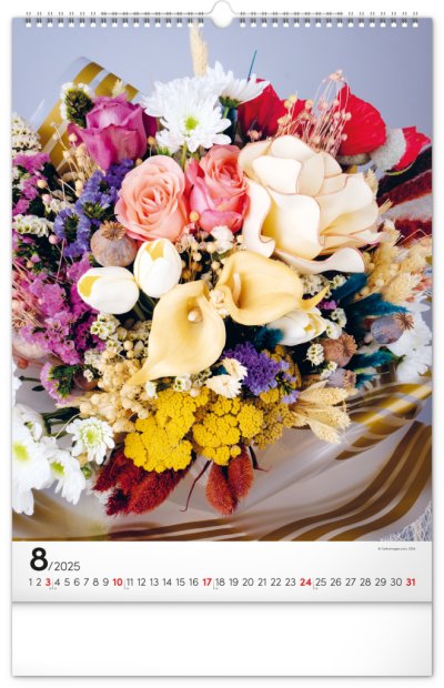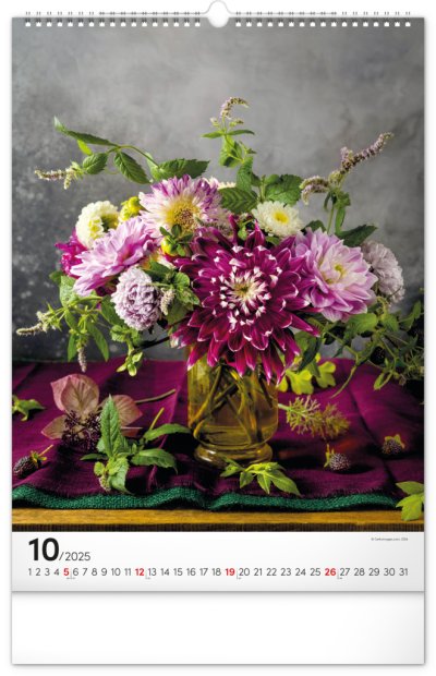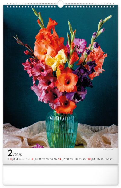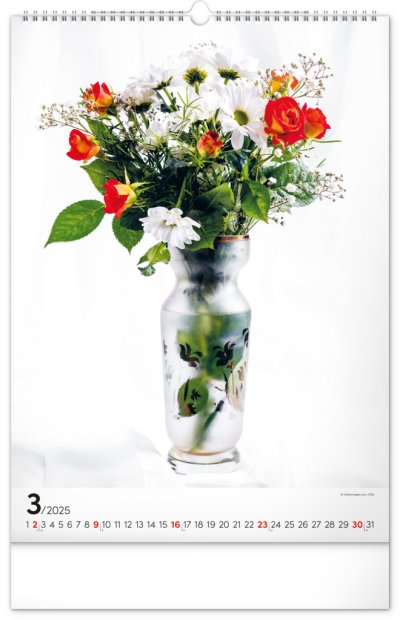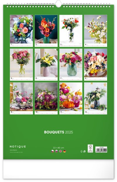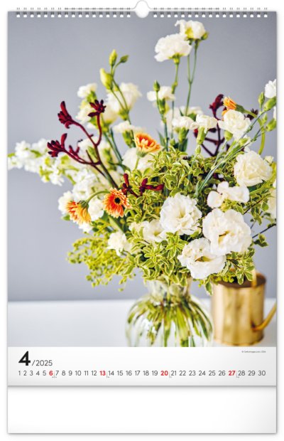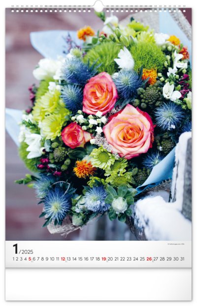 Originálne naaranžované kytice z čerstvých živých kvetov v nástennom kalendári s univerzálnym kalendáriom. Potešte sa pohľadom na fotografie pestrých a nikdy nevädnúcich kvetov bez ohľadu na ročnú dobu.