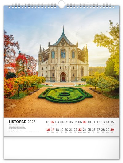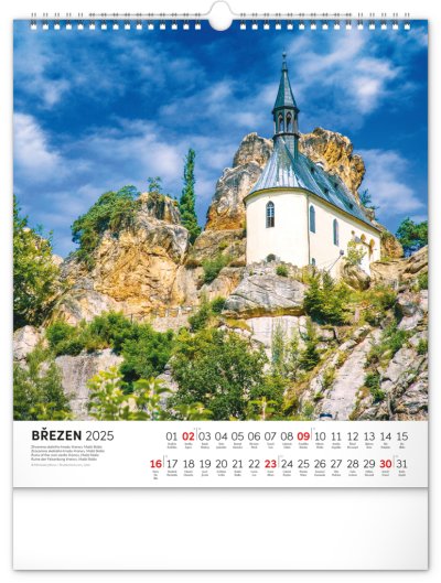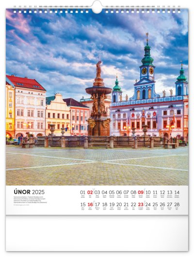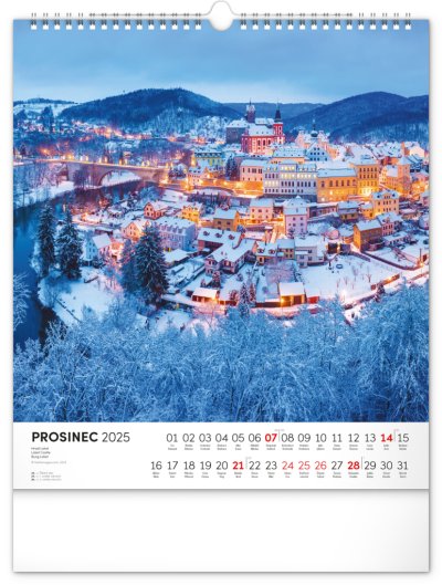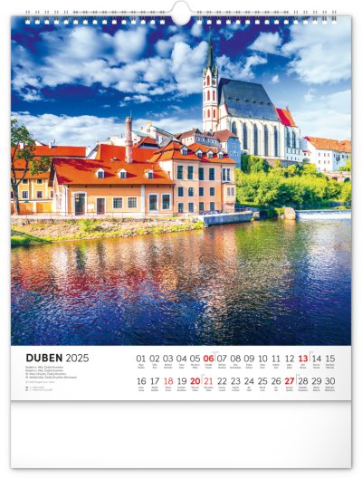 Dvanásť malebných miest Českej republiky – od Karlových Varov po Znojmo. S českým kalendáriom av praktickom formáte, ktorý sa hodí do každého interiéru.