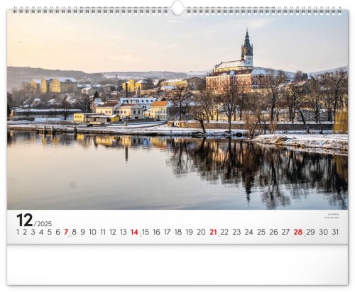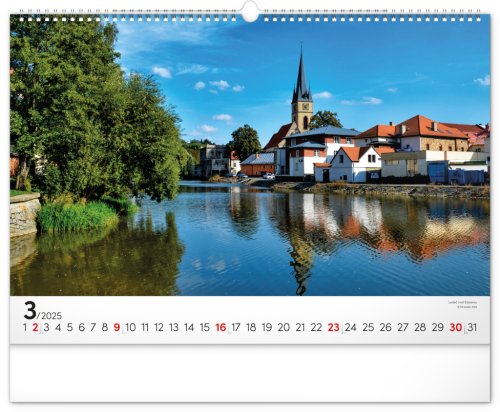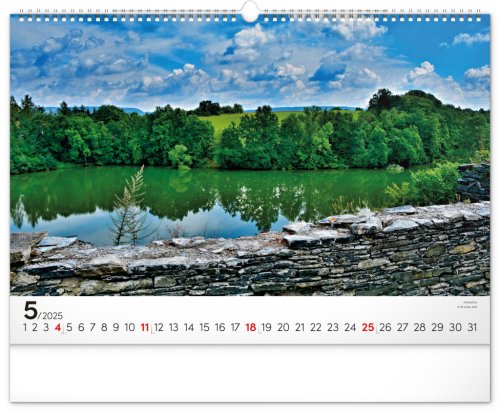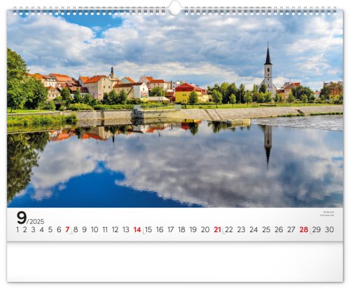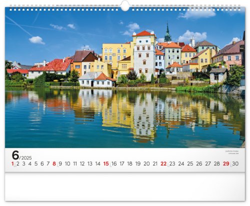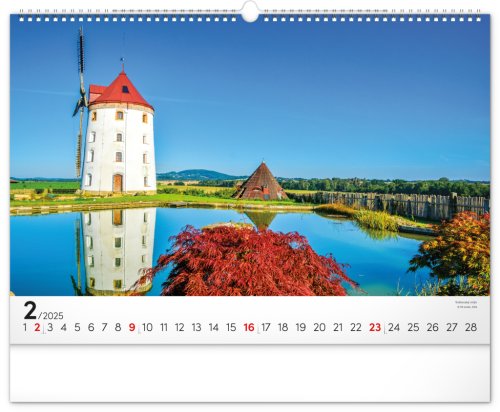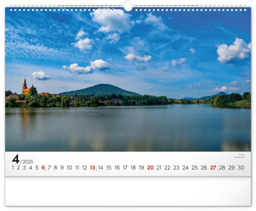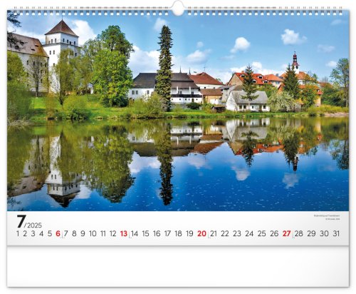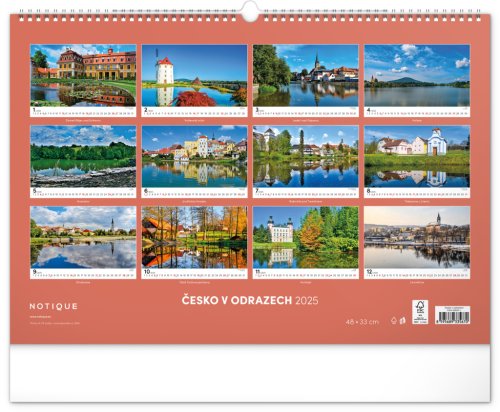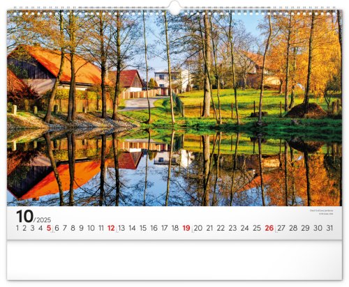 Dvanásť pôsobivých snímok zachytávajúcich krásu Čiech a Moravy zrkadliace sa na vodnej hladine v šírkovom formáte. Fotografie sú doplnené jednoduchým kalendáriom na bielom pozadí.