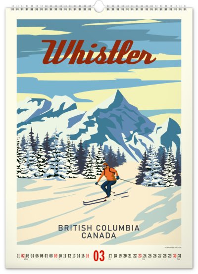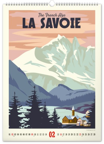 Veľkoformátový kalendár so starostlivo vybranými klasickými plagátmi horských stredísk. Prepracované detaily a živé farby je možné obdivovať na veľkom formáte kalendára s vysokou gramážou papiera.