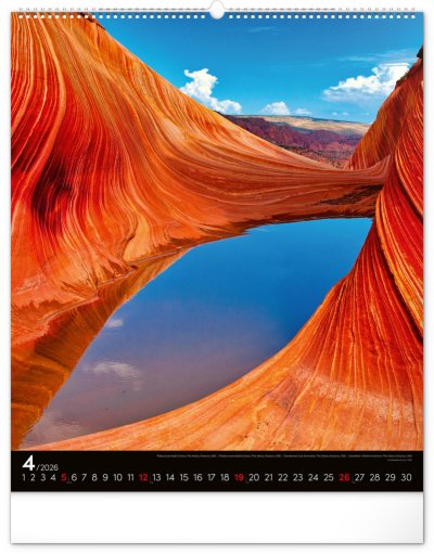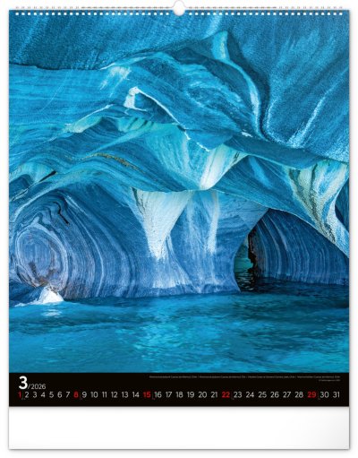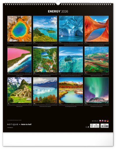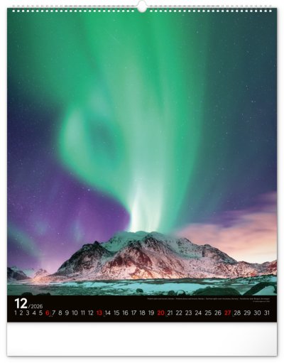 Kalendár z kolekcie Platinum Collection obsahuje veľkoformátové fotografie prírodných scenérií z exotických krajín. Zaveste si na stenu okno do sveta! Fotografie islandskej prírody alebo arménskeho kláštora dopĺňa univerzálne kalendárium na čiernom pozadí.