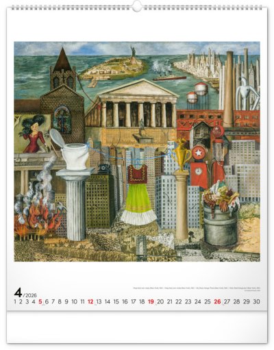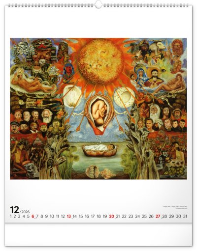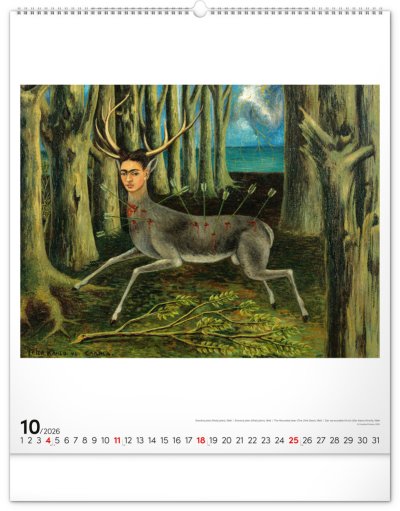 Veľkoformátový kalendár s dvanástimi obrazmi mexickej maliarky, ktorej život aj tvorba sa stali symbolom odvahy a osobitého umenia. Dielo Fridy Kahlo dopĺňa jednoduché univerzálne kalendárium na bielom pozadí.