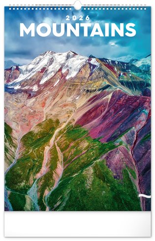 Nástenný kalendár v atraktívnom výškovom formáte obsahuje fotografie majestátnych hôr z Nového Zélandu, Islandu, Francúzska alebo USA. Fotografie sú doplnené jednoduchým kalendáriom.