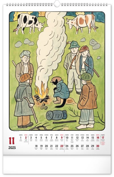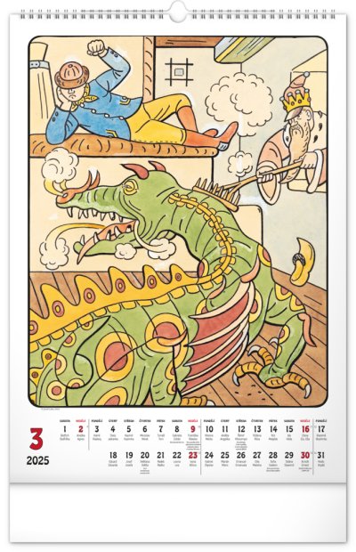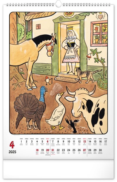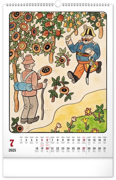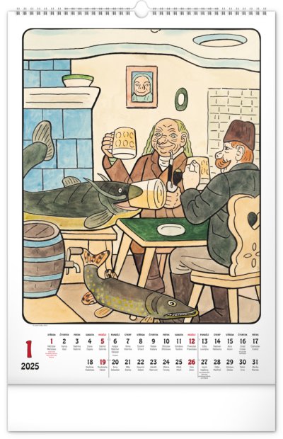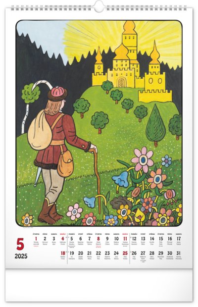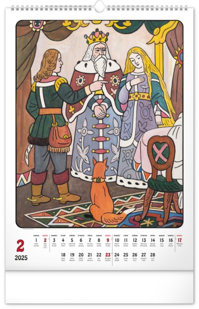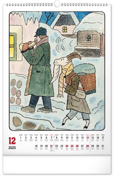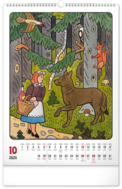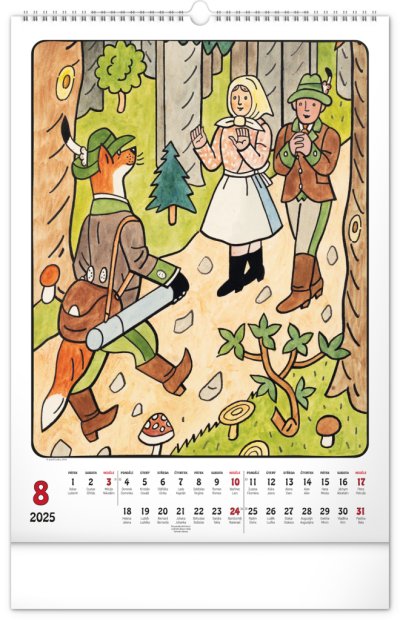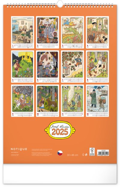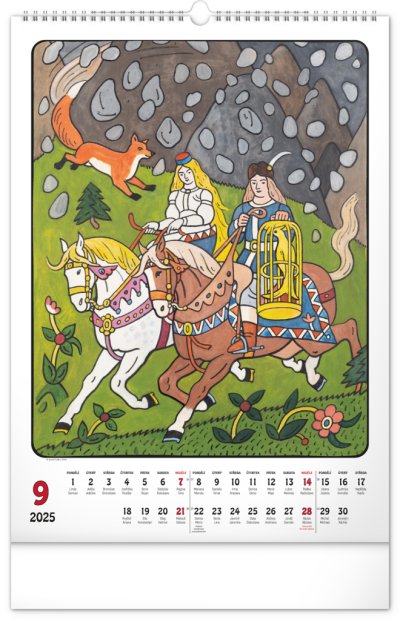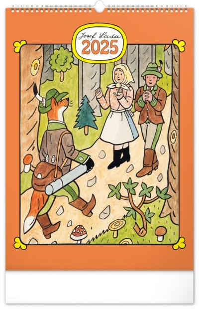 Nástenný kalendár s ilustráciami Jozefa Lady a jeho rozprávkovými motívmi je vyhotovený v obľúbenom veľkom formáte, ktorý osvieži každý interiér. V kalendári je rovnocenne zahrnutá čeština a slovenčina, ilustrácie dopĺňajú české a slovenské mená, sviatky, pamätné dni a fázy mesiaca. Každý deň má priestor na poznámky, víkendové dni sú farebne odlíšené od pracovných.