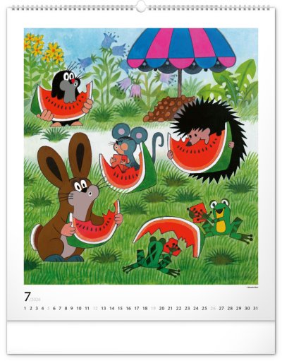 Príbehy o Krtkovi a jeho dobrodružstvách v ilustráciách Zdeňka Milera. Ak ste tiež vyrástli na jeho príbehoch, budete nadšení. Veľkoformátový kalendár je vytlačený na kvalitnom papieri s vysokou gramážou a ilustrácie dopĺňa univerzálne kalendárium so zvýraznenými nedeľami na bielom pozadí.