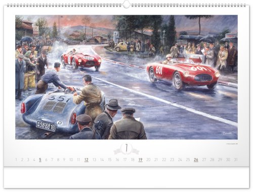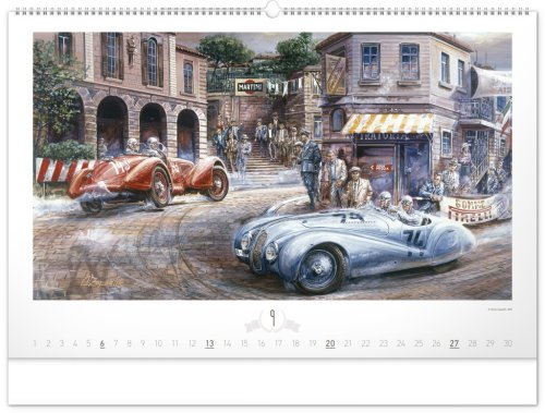 Krása starých športových automobilov a neopakovateľnej závodnej atmosféry od českej ilustrátorskej legendy Václava Zapadlíka. Nástenný kalendár v šírkovom formáte je doplnený univerzálnym kalendáriom so zvýraznenými nedeľami.
