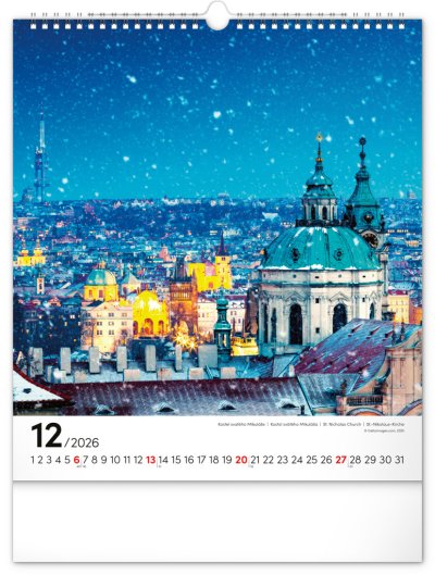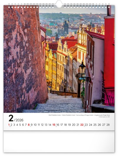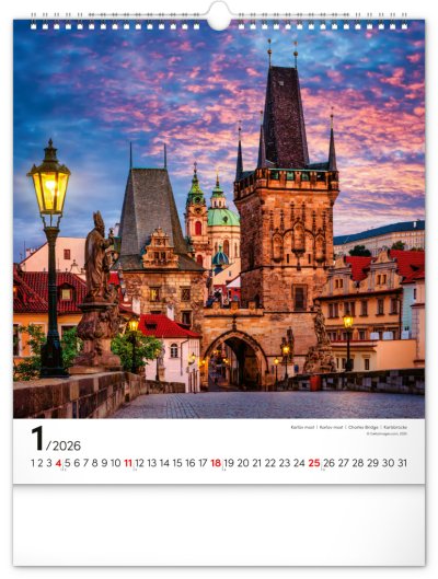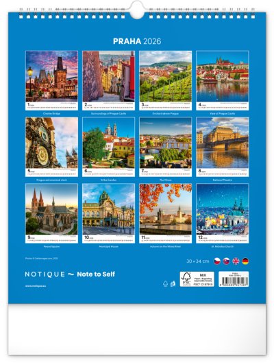 Kalendár ukazuje Prahu nielen ako hlavné mesto, ale aj ako historické centrum európskeho umenia a kultúry. Praha sa pýši svojimi krásami na dvanástich fotografiách, ktoré dopĺňa jednoduché kalendárium nerušiacu kompozíciu fotografie.