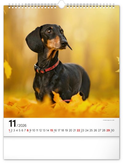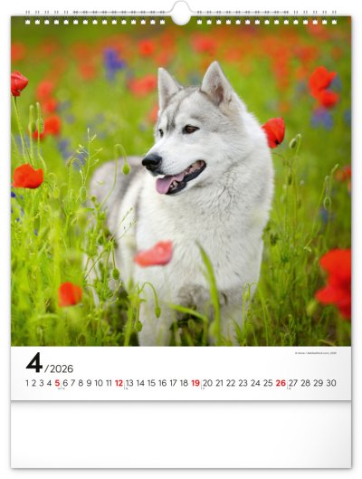 Pes je najlepším priateľom človeka. Snímky dvanástich psích plemien sú v našom nástennom kalendári doplnené univerzálnym kalendáriom na bielom pozadí.