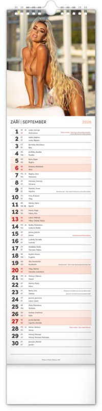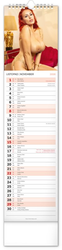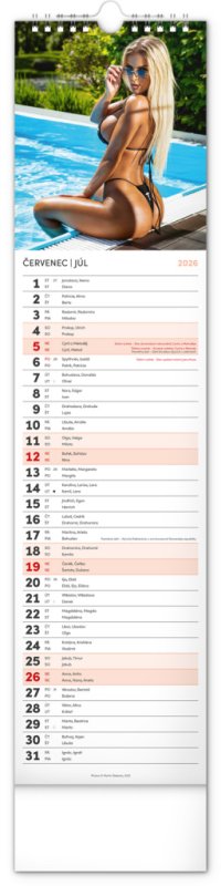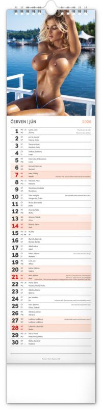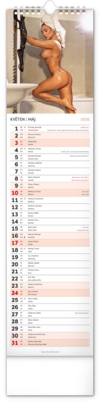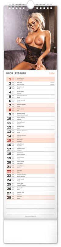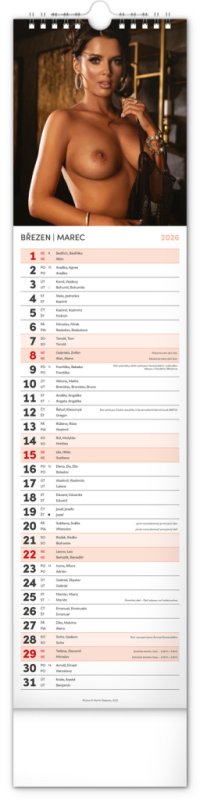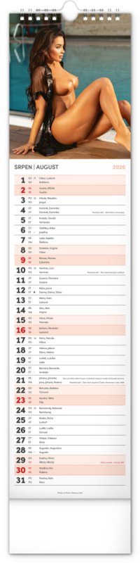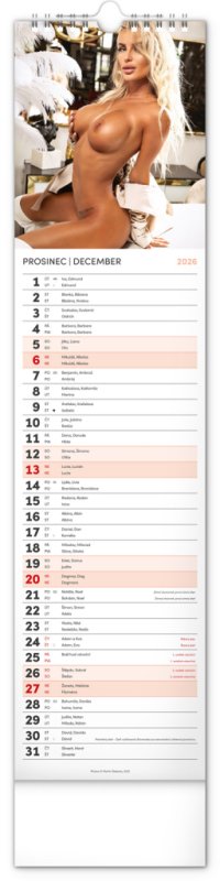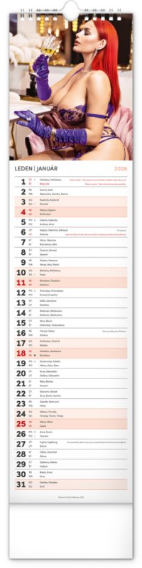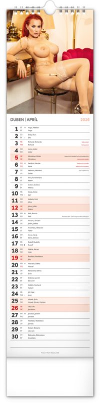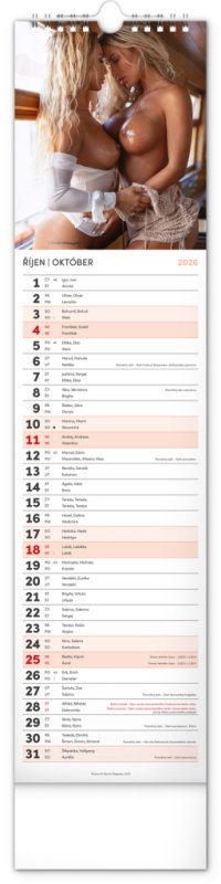 Pikantná erotika na dvanástich fotografiách úzkeho formátu nástenného kalendára. Snímky odvážnych žien dopĺňa české a slovenské kalendárium.