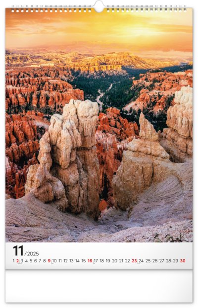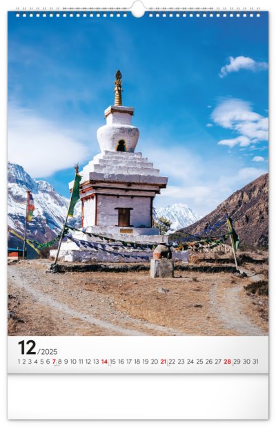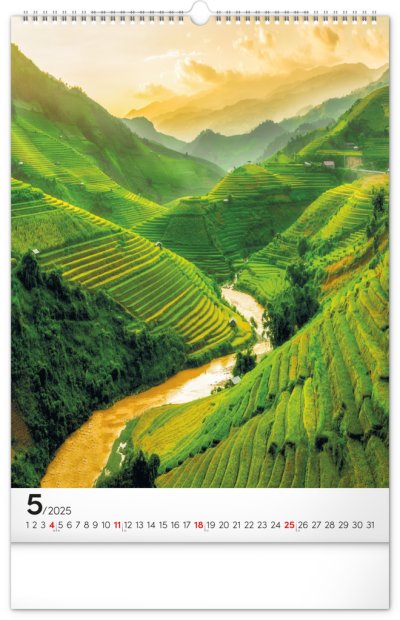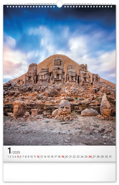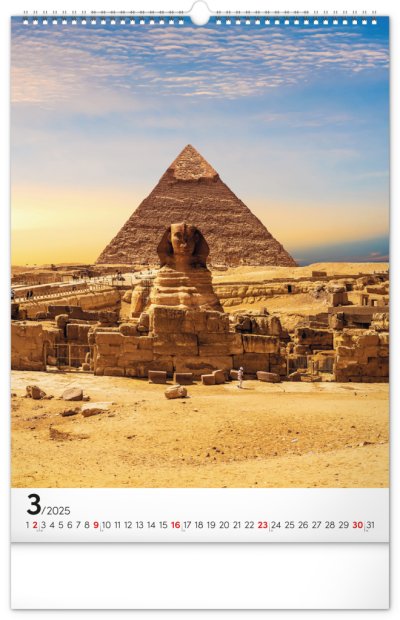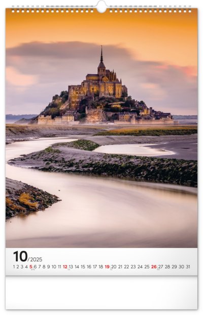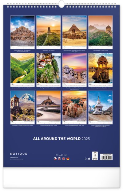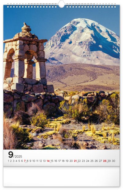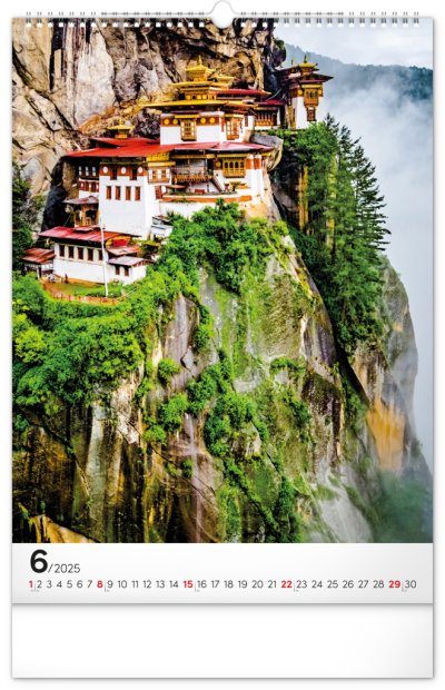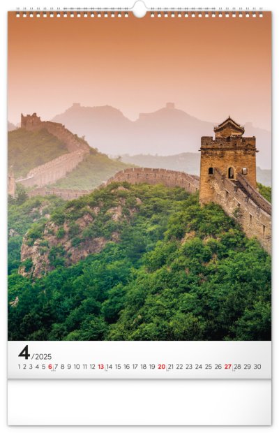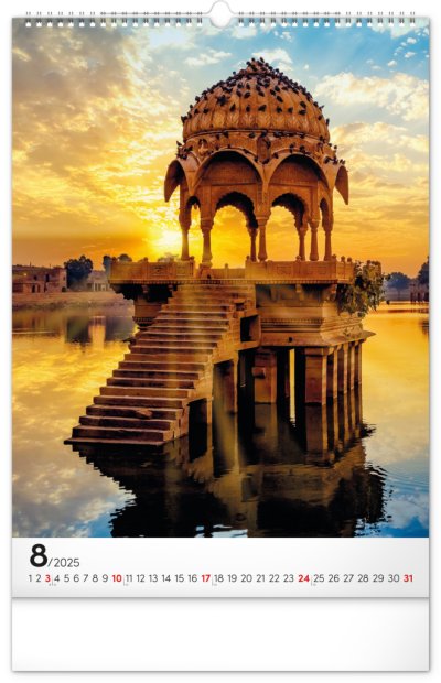Procestujte prostredníctvom nášho kalendára rozličné destinácie, kde boli vytvorené dych vyrážajúce stavby. Sýto farebné výjavy pekne vyniknú na bielom pozadí s jednoduchým kalendáriom.