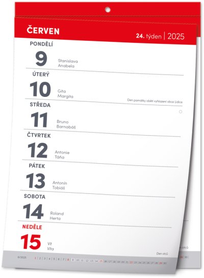 Nástenný trhací kalendár, s ktorým vám rok doslova utečie pred očami. Praktický formát A5 je vhodný do každej miestnosti. Týždenný kalendárium obsahuje české mená, sviatky a pamätné dni a prehľad aktuálneho mesiaca každého týždňa.