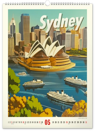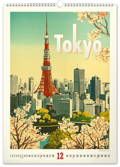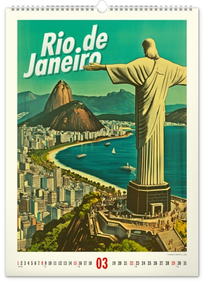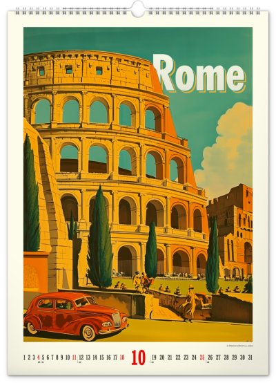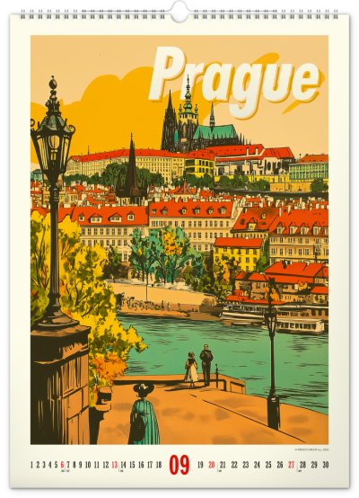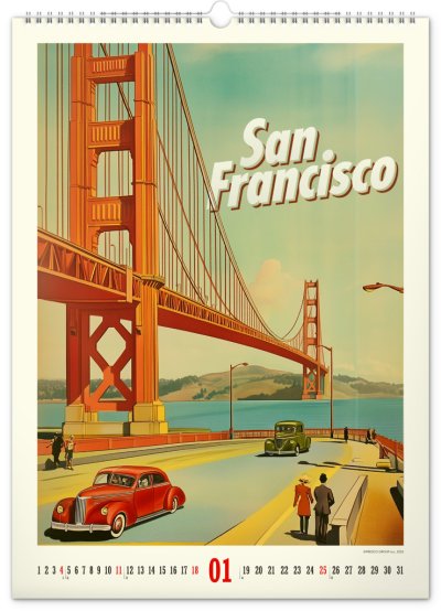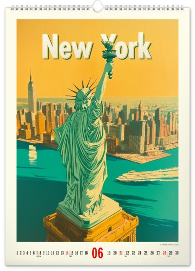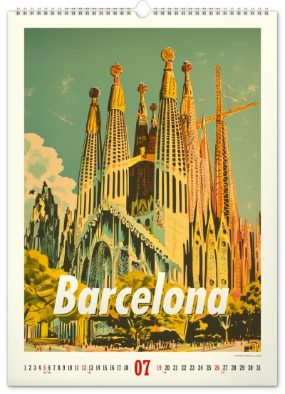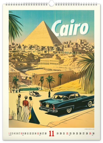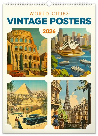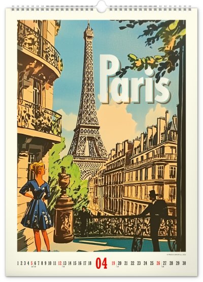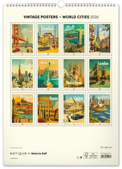 Nechajte sa uniesť atmosférou miest ako zo starých dobrých časov. Nástenný kalendár dopĺňa jednoduché kalendárium na bielom pozadí.
